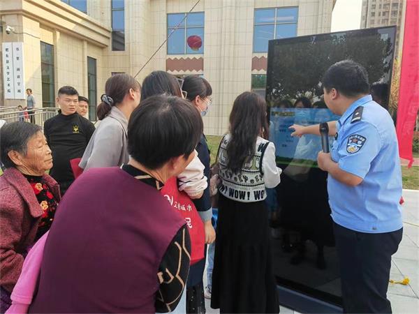 在公安便民服务“摊位”旁的智能答题机前,市民谢璐璐正在高兴地参加有奖答题,随机抽取文明出行、文明养犬、防电诈等类型题目,现场回答正确即可获得精美礼品一份。“几乎每个重要路口都有交警、劝导员现场指挥着,交通秩序特别好,出行很有安全感。”谢璐璐举着手里的警察小熊,为肥东的文明出行点了个大赞。