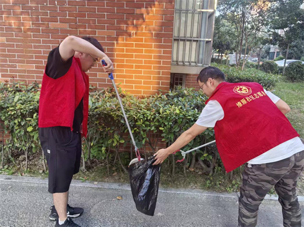 10月10日,肥东经开区燎原社区新时代文明实践站组织志愿者在辖区内开展环境卫生集中清整行动。