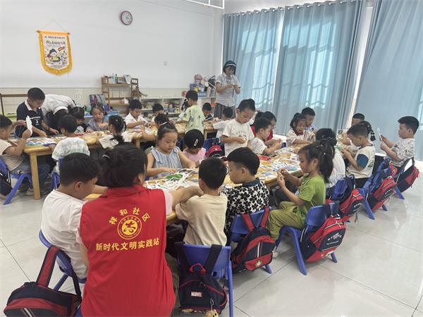 讲解结束后,有趣的手工制作环节开启。志愿者给孩子们分发手工材料,带领大家制作与垃圾分类相关的创意手工作品。孩子们兴致勃勃,在志愿者和老师的帮助下,认真地分类、粘贴,将对垃圾分类的认知融入作品中。活动最后,孩子们纷纷举起自己完成的手工作品,脸上洋溢着自豪的笑容。