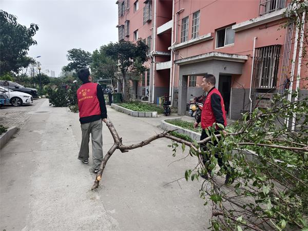 此次行动前,社区通过网格巡查发现,晨光花园北区小区绿化带旁堆积了大量树干、枝杈,以及居民丢弃的大件生活垃圾,不仅破坏绿化景观,更占用公共空间、影响居民通行。行动当日,志愿者们带着铁锹、手套、清运车辆等工具,奔赴问题点位,集中归拢、分段处理了堆积已久、影响通行的树干枝杈、生活垃圾等。大家齐心协力,肩扛手抬,将其装车运走。经过数小时的辛勤劳动,共计清理占道树干、枝杈及大件生活垃圾5车,有效畅通了小区内通道。