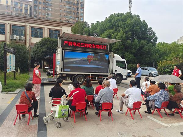活动现场,社区工作人员、交管执法人员与居民一起观看交通安全视频,大家认真聆听讲解,深入了解各类交通违法行为的危害后果。观看过程中,交管执法人员结合案例,现场劝导居民自觉抵制交通陋习与危险驾驶行为,帮助居民加深对交通安全知识的理解。此外,志愿者还针对 “一盔一带” 进行重点宣传,告诉居民骑乘摩托车、电动车需规范佩戴头盔,驾乘汽车必须系好安全带,让大家切实认识到这些防护措施对保障生命安全的重要性。