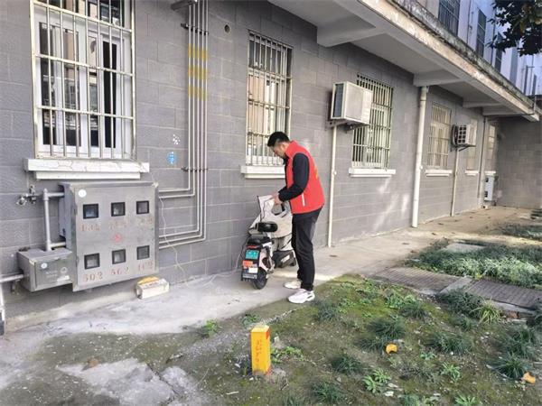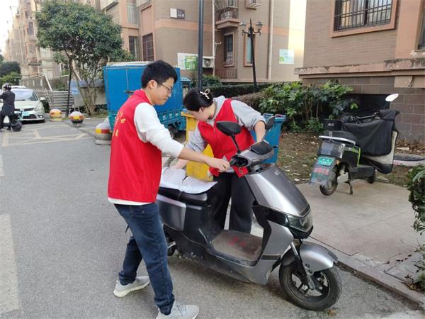 活动中,志愿者分工协作:“地毯式”清理路面漂浮物与绿化带隐藏垃圾,引导居民规范停放电动车(规整无主车辆),排查劝阻飞线充电并讲解消防知识,归位乱摆的垃圾桶以规范垃圾投放。