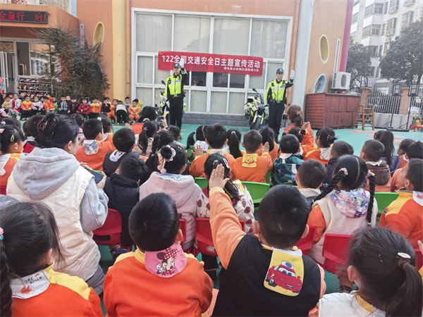 12月2日全国交通安全日,肥东经开区陈大郢社区联合交管、司法部门走进万和云锦幼儿园,开展“礼让文明润童心”主题活动,通过实景实践与专题宣讲相结合的方式,为300余名幼儿及家长普及交通安全知识。