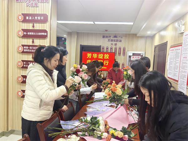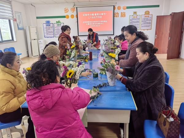 店埠镇镇西社区新时代文明实践站开展“花香伴巾帼 最美女神节”活动。活动现场温馨雅致,志愿者提前备好洋桔梗、百合、玫瑰等鲜花及插花工具,先向大家讲解花材识别、色彩搭配、造型设计与养护等插花技巧,帮助大家掌握基础方法。随后,参与者化身花艺师,认真修剪、搭配、创作,将普通花草打造成错落有致的插花作品,大家边创作边交流,在轻松欢快的氛围中感受花艺魅力,共度温馨时光。