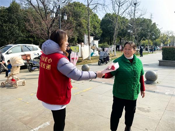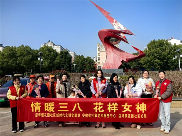 店埠镇花园社区新时代文明实践站在御景花园文化广场开展“情暖三八 花样女神”送花活动。社区志愿者设立宣传服务台,手捧芬芳的康乃馨,将鲜花送到路过的女同胞手中,同时送上真挚的节日祝福,祝愿她们节日快乐、青春永驻。一束束鲜花承载着美好祝愿,收到鲜花的女同胞们脸上纷纷绽放幸福笑容,或惊喜或感动,纷纷向社区工作人员表示感谢,并合影留念,记录下这温馨一刻。